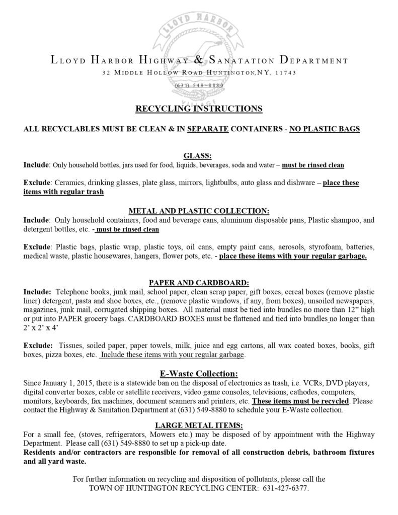 TOWN OF HUNTINGTON RECYCLING CENTER: (631) 427-6377